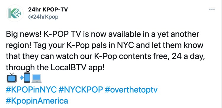 I wrote social media copy and the promo ad that was posted as a paid ad on social media and also broadcast on KPOP-TV to promote KPOP-TV’s launch in New York City and the promotional giveaway event to celebrate the launch.