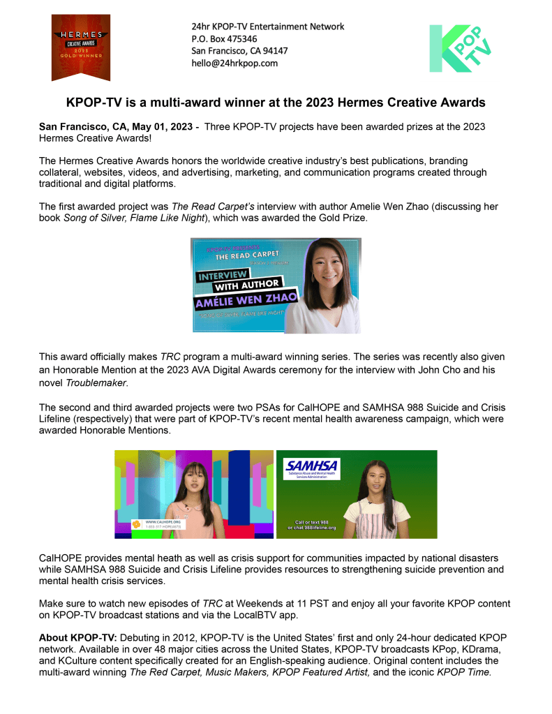 The two PSAs were for CalHOPE and SAMHSA 988 Suicide and Crisis Lifeline, which aired as part of KPOP-TV’s recent mental health awareness campaign.
