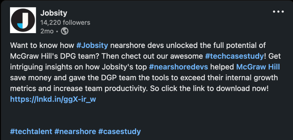 During my 5-month contract with Jobsity (a LATAM nearshore staff augmentation tech firm), I partnered with the internal and external creative resources to develop high converting direct response concepts for B2C and B2B marketing efforts.